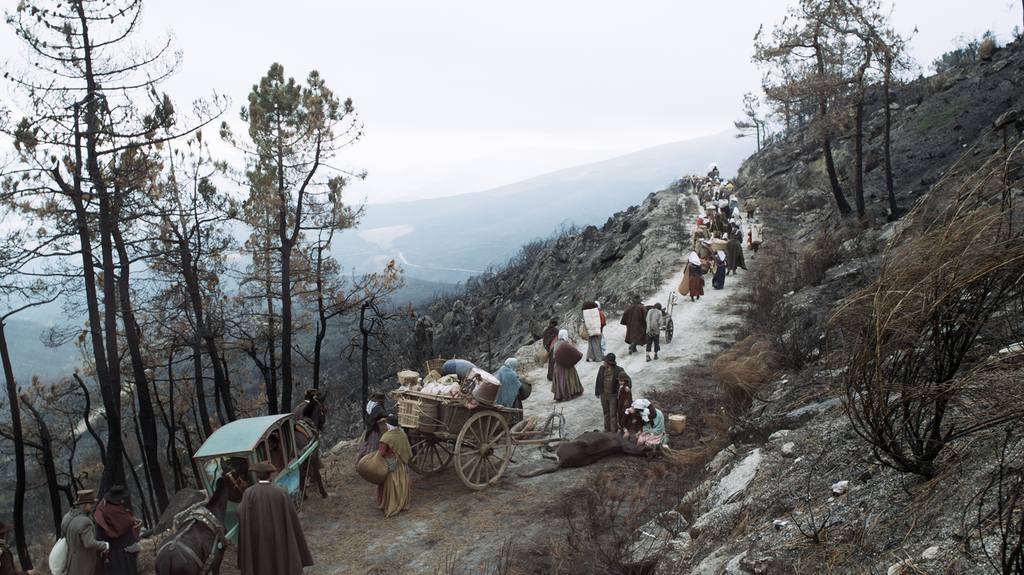 Cette stratégie, couplée à une opération de terre brûlée, plonge les populations civiles dans l’exode. Accompagnant les soldats dans leur marche, tout un peuple subit au quotidien les déchirements de la guerre et progresse à travers les villages en ruines, les forêts incendiées et les cultures dévastées. Certains réaffirment leur volonté de résister à l’envahisseur, d’